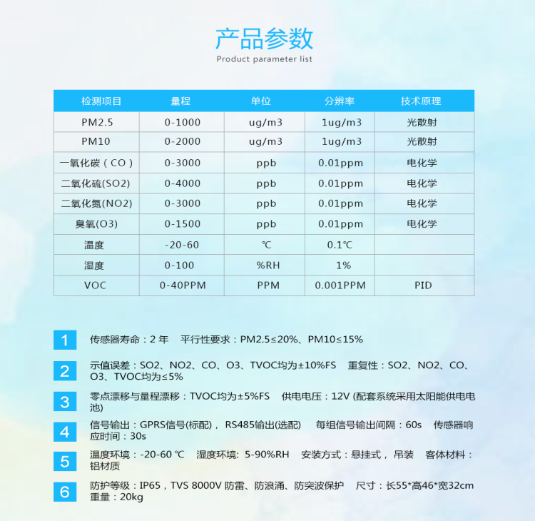 为了持续改善城市空气质量,响应环保部出台 的《十三五环境监测质量管理工作方案》、《京津冀及周边地区2017年大气污染防治工作方案》等文件,深入实施《大气污染防治行业计划》,全面加强区域大气污染防治网格化管理,实现“监测无空白,比对无差异,一网一库一平台”的目标,我司用多年气体探测器生产经验,突破国内多项技术壁垒,结合物联网数据台平,成功研发出了可适用于批量化、网格化监测用的OSEN-AQMS微型空气站。