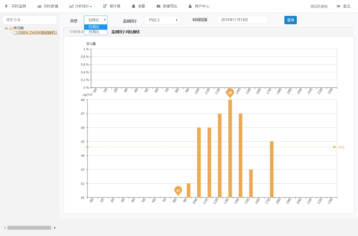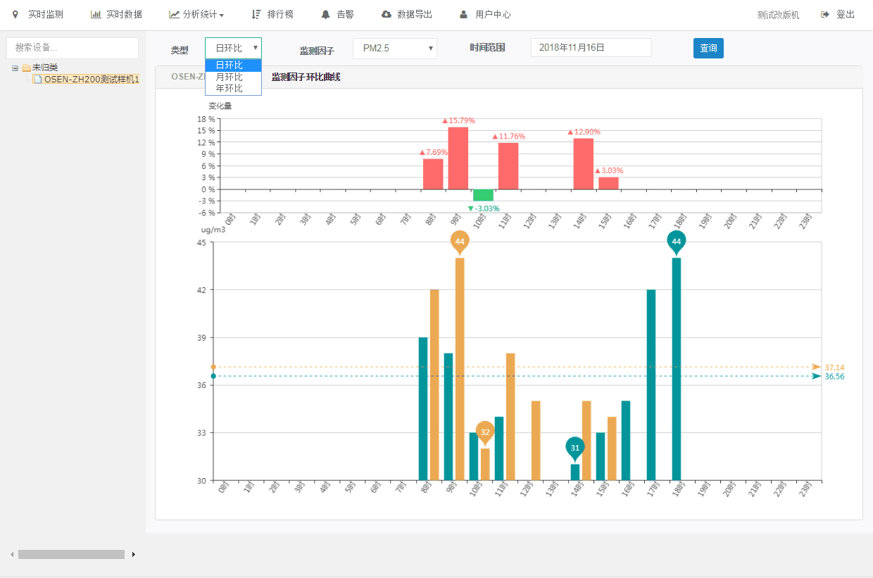 通过历史数据曲线分析图,可直观快速读取到设备的历史数据变化趋势和最近30天的日平均数据;